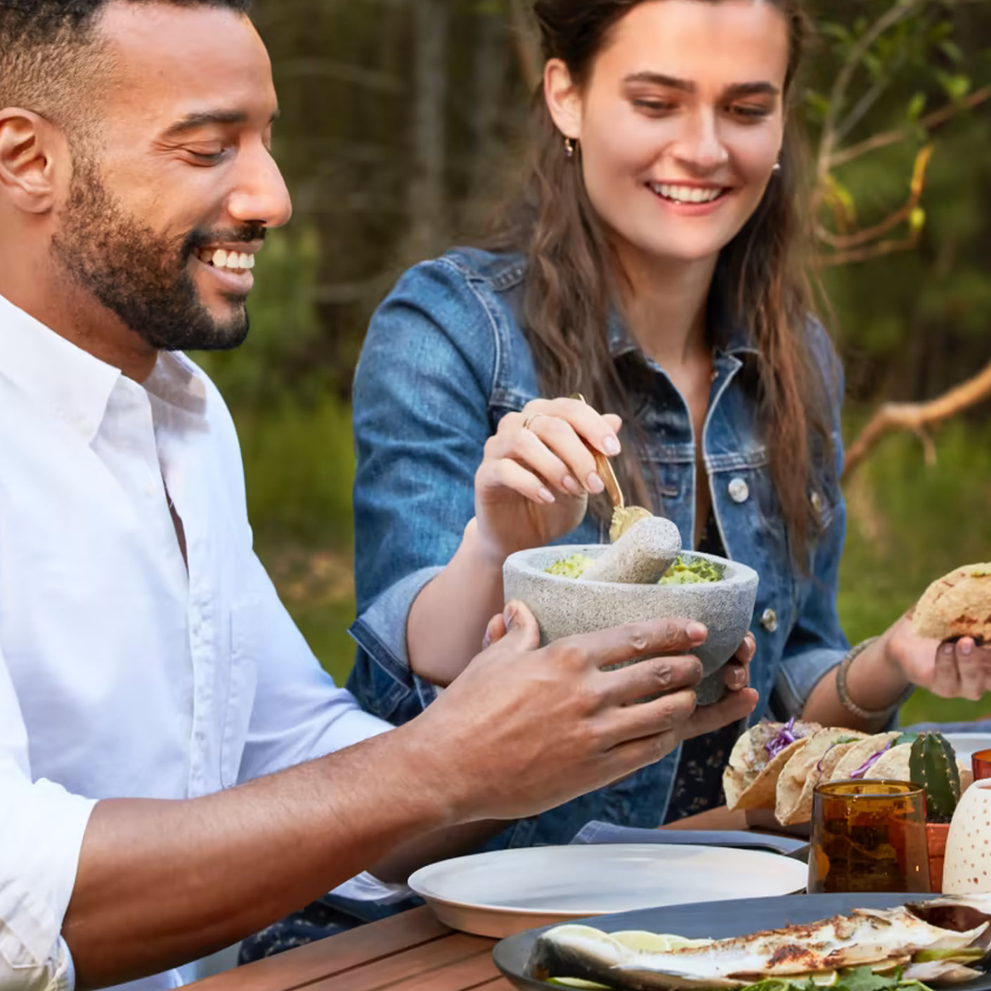 Take control of texture and merge flavors in a way that elevates your culinary pursuits to the next level. No matter what blend of flavor and spice you choose, the mortar is large and heavy enough to handle big batches of guacamole, pesto, or salsa — and works overtime as a serving dish thanks to the sleek flecked stone and clean details.