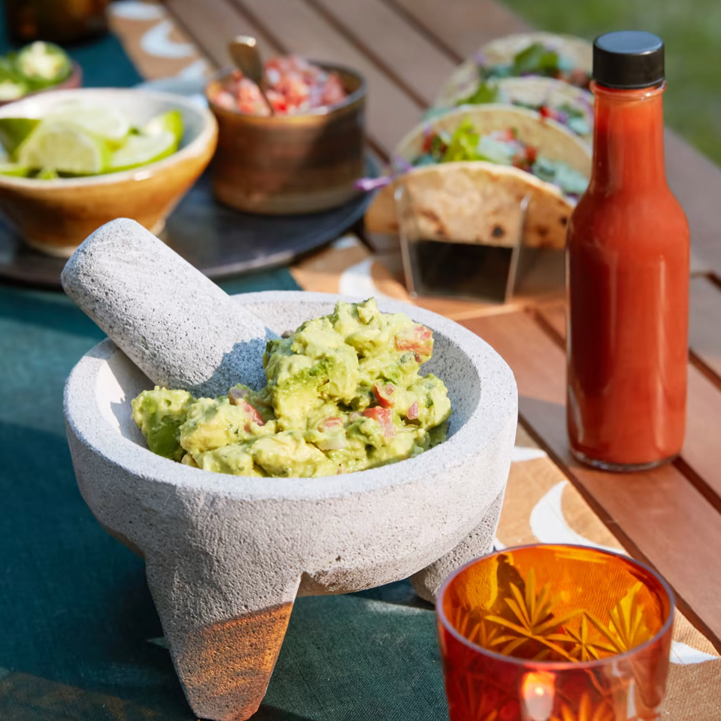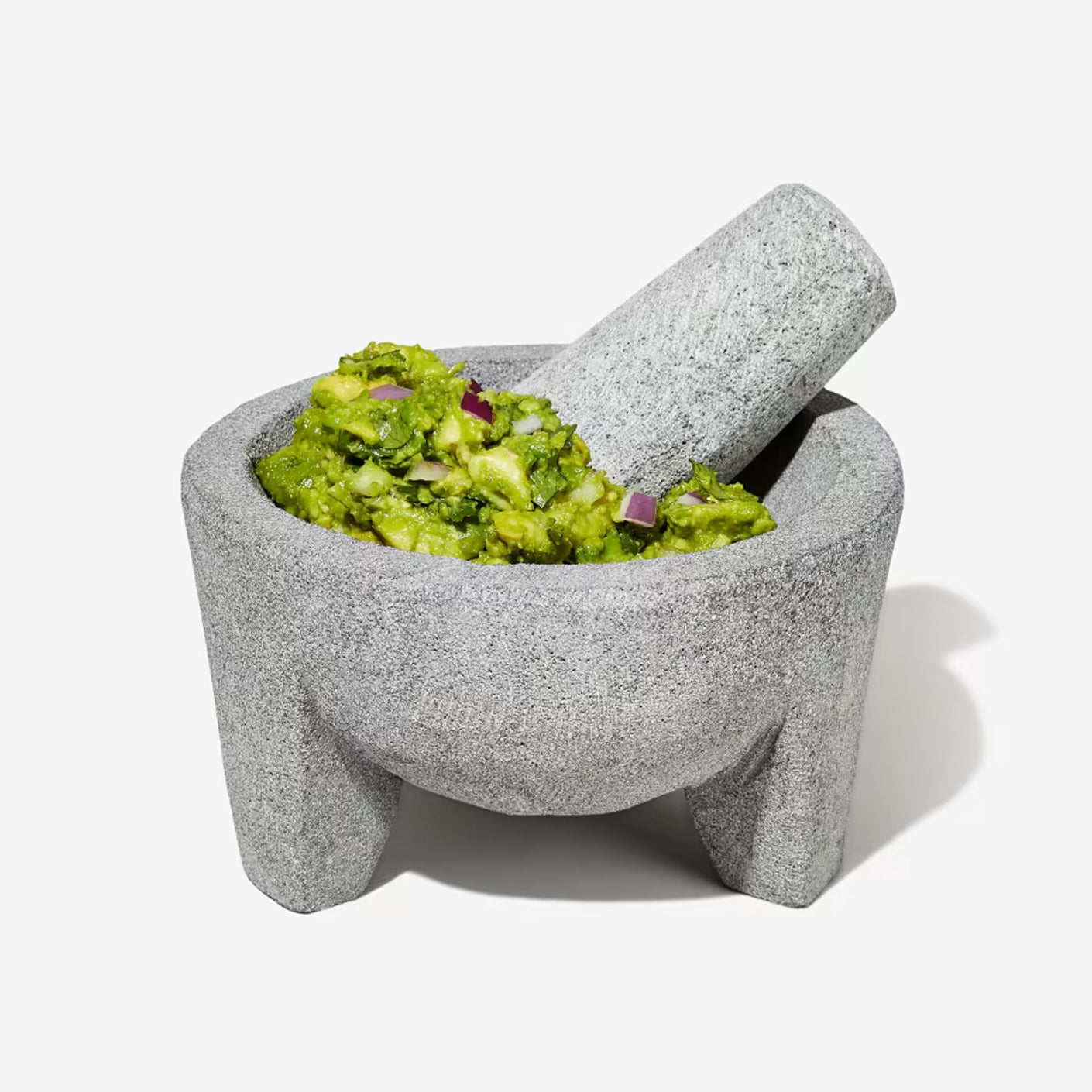 Made by Mexican artisans from natural lava stone, the molcajete is derived from rich culinary traditions, with the ability to extract the depth of flavor from something as simple as a store-bought tomato.