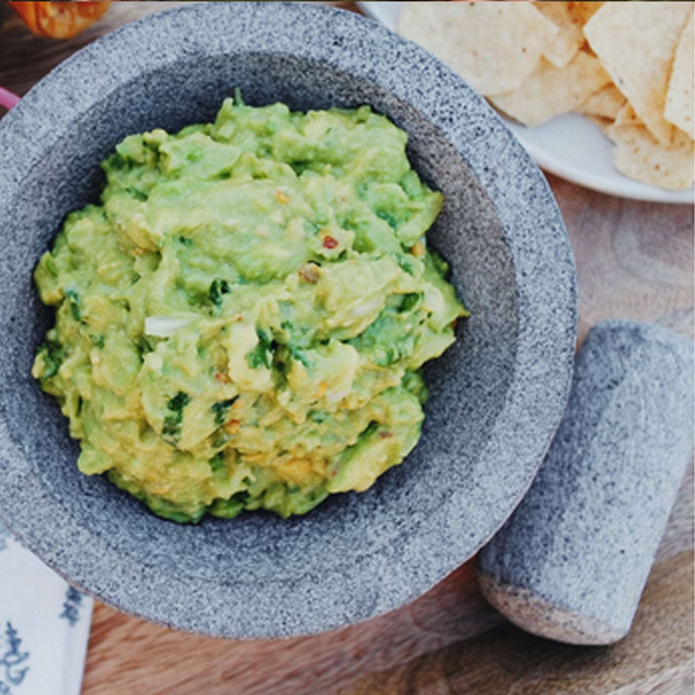 Directions: Chop onion, jalapeno, and cilantro. Add onion, jalapeno, and cilantro to molcajete, along with the salt and the juice of one lime. Grind into a paste using the tejolote, or pestle. Add the peeled avocados, and use the tejolote to combine. Add more salt or another squeeze of lime to taste. Serve immediately with warm tortilla chips or on tacos, burritos, or tostadas.