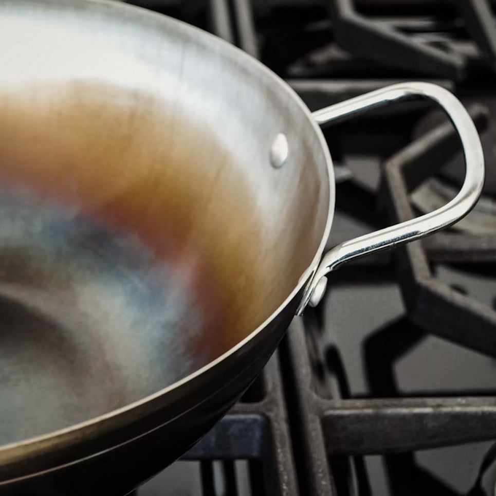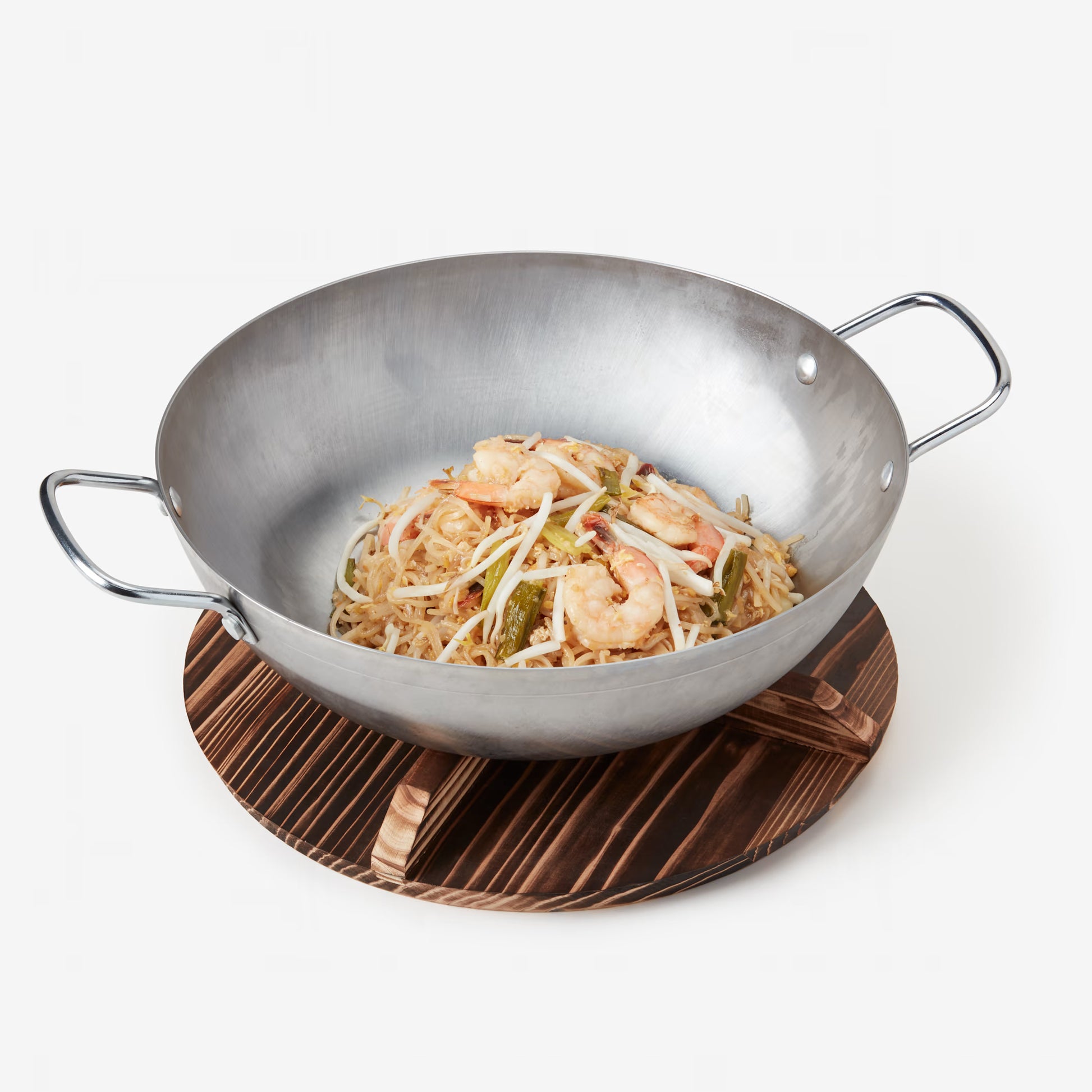 Carbon Steel Wok with Convertible Wood Trivet Lid