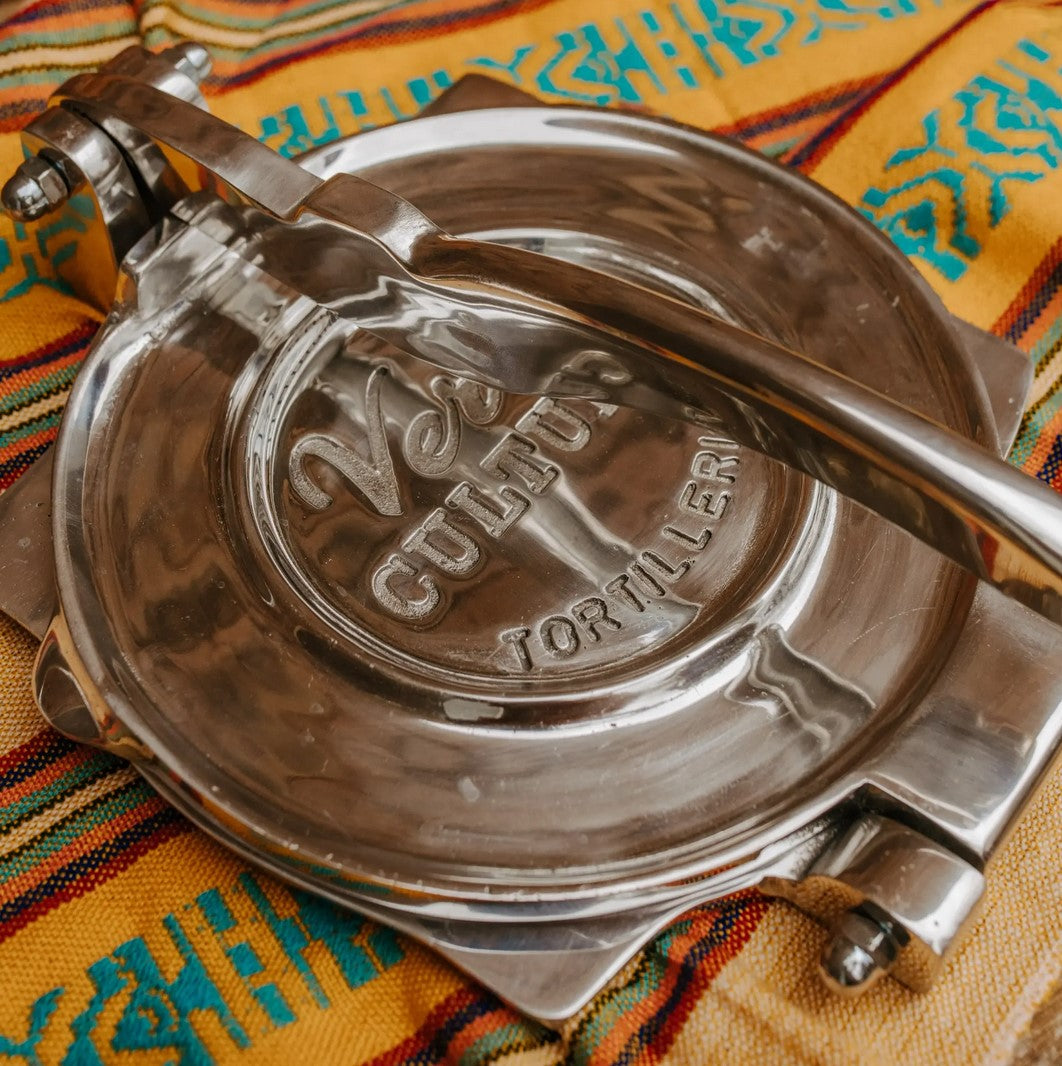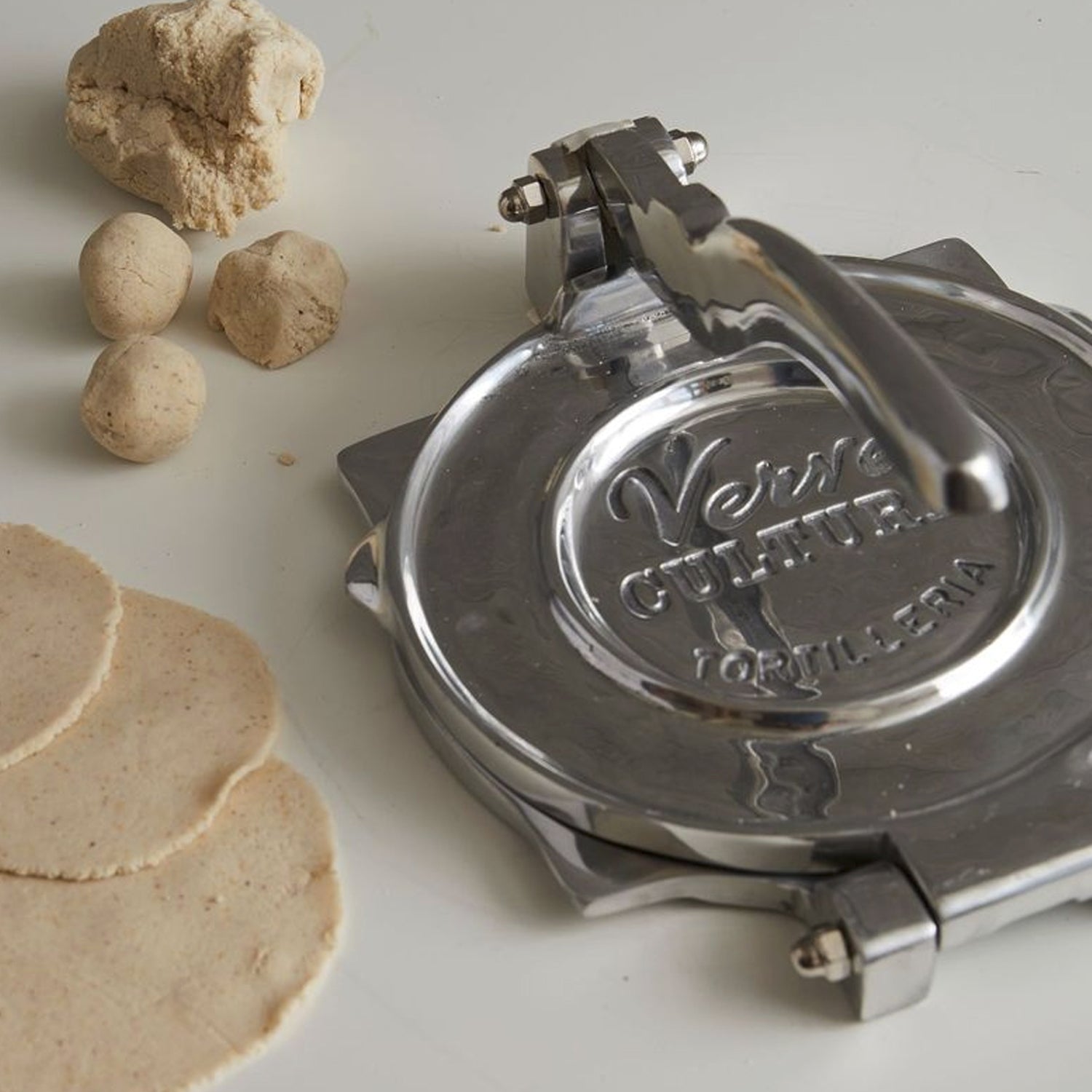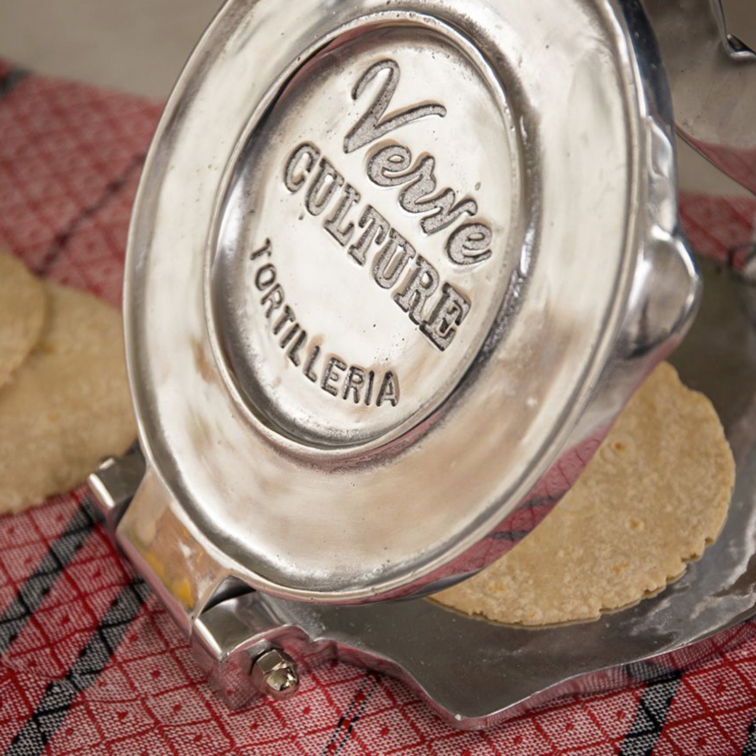 Verve Culture's Large Tortilla Press is made from recycled aluminum. Though lighter than cast iron, the large size of this press will still give you uniform, flat tortillas - and lasts forever. Our artisans have highly polished this press to make it a show-stopper.